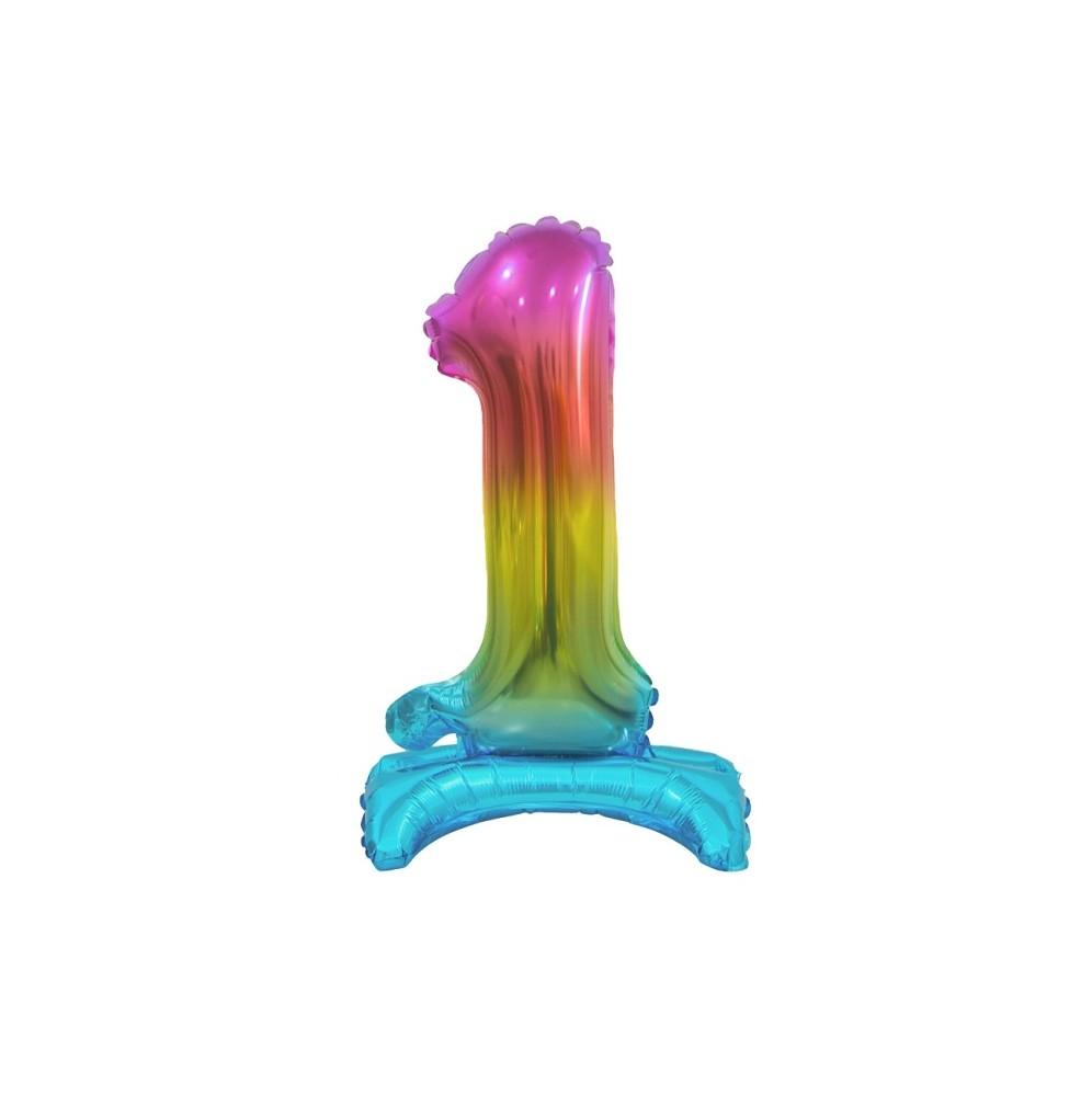 Balon Foliowy Stojący Cyfra Tęczowa'1'-38 cm