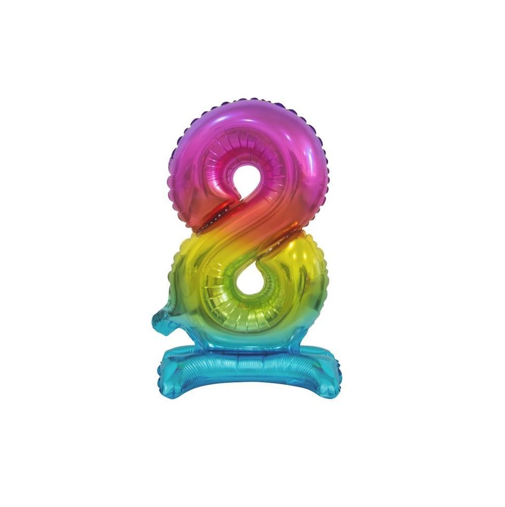 Balon Foliowy Stojący Cyfra Tęczowa'8'-38 cm