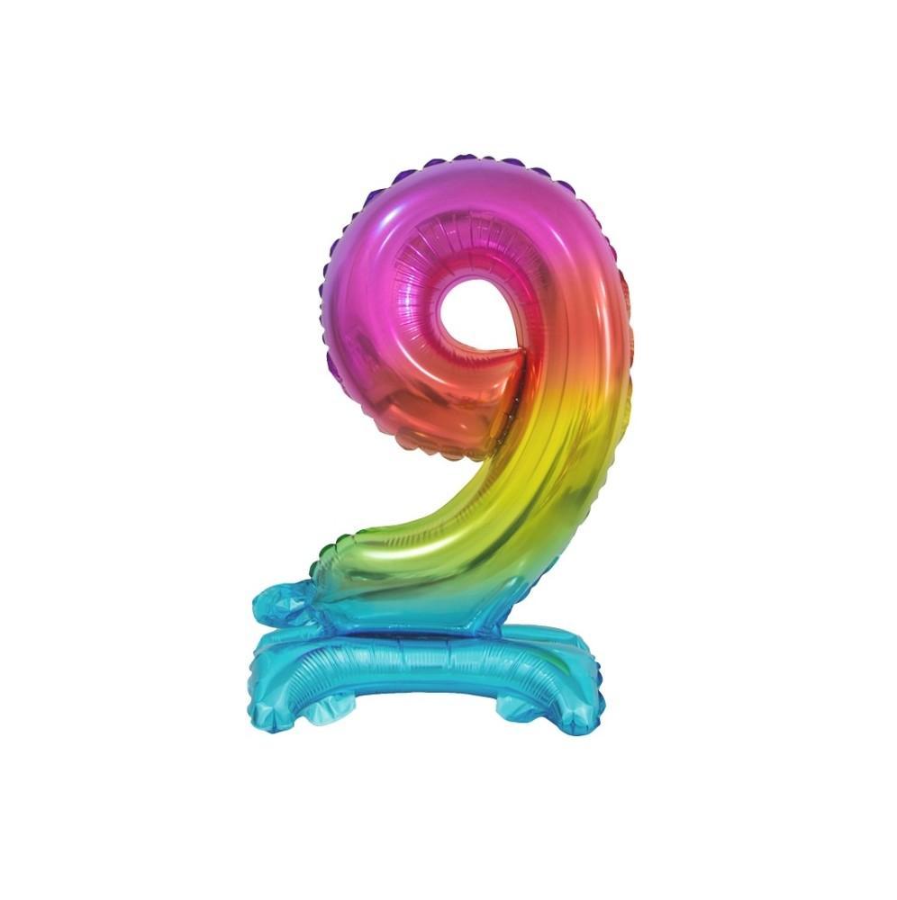 Balon Foliowy Stojący Cyfra Tęczowa'9'-38 cm