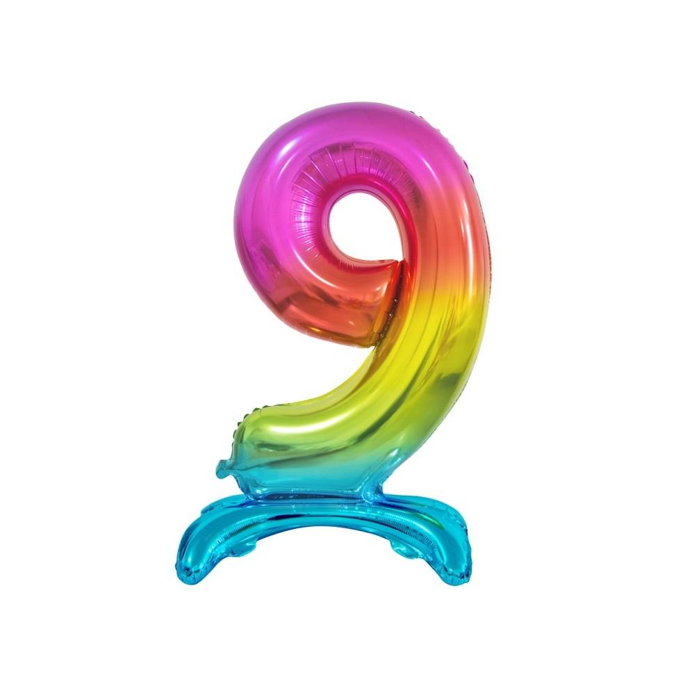 Balon Foliowy Stojący Cyfra Tęczowa'9'-74 cm
