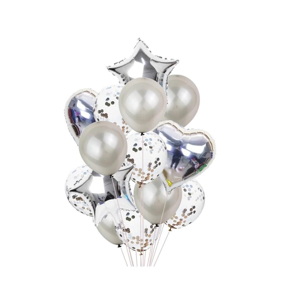 Balony Bukiet Balonowy Srebrny 14 sztuk-Zestaw