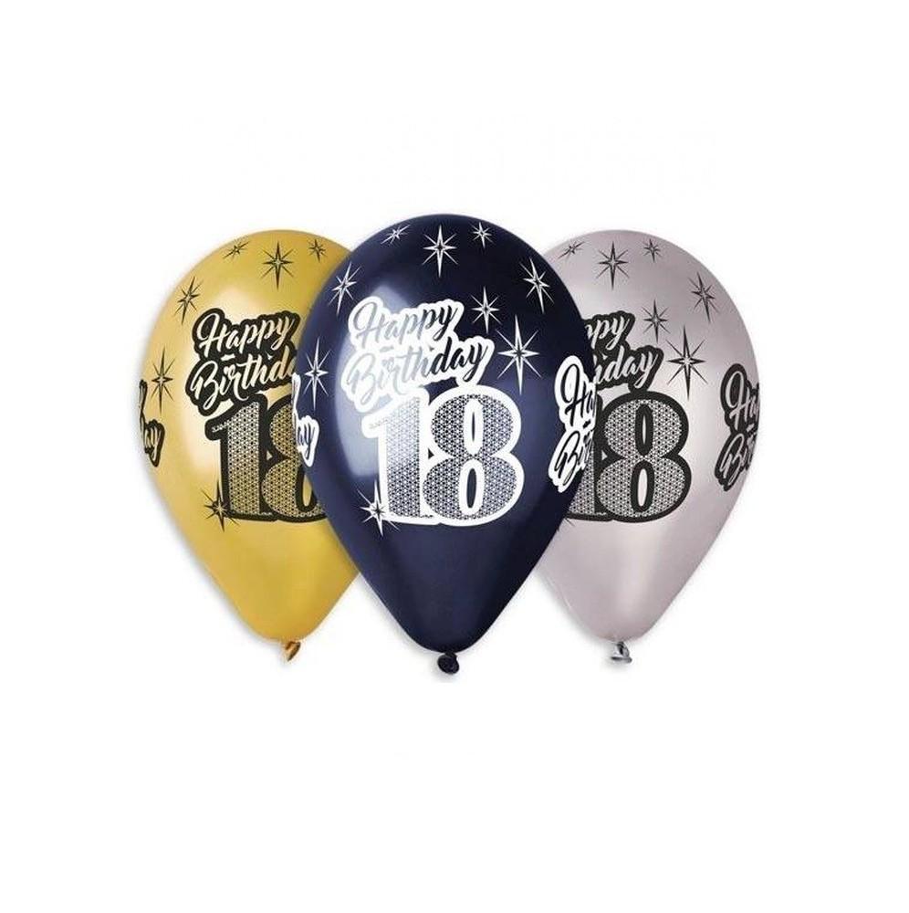 Wysokiej jakości balony lateksowe z nadrukiem „18” idealne na osiemnaste urodziny.