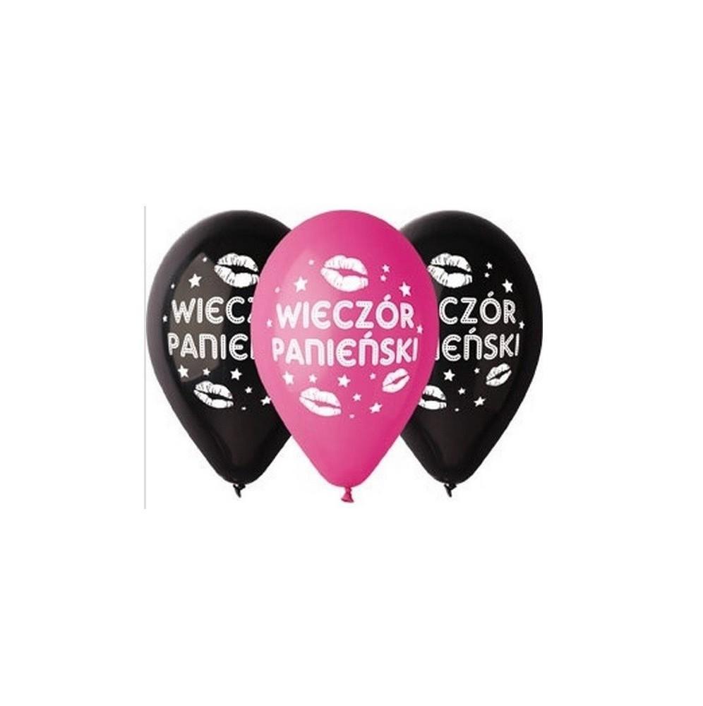 Balony na wieczór panieński w kolorze różowym i czarnym z napisem Wieczór Panieński oraz z nadrukiem damskich ust.