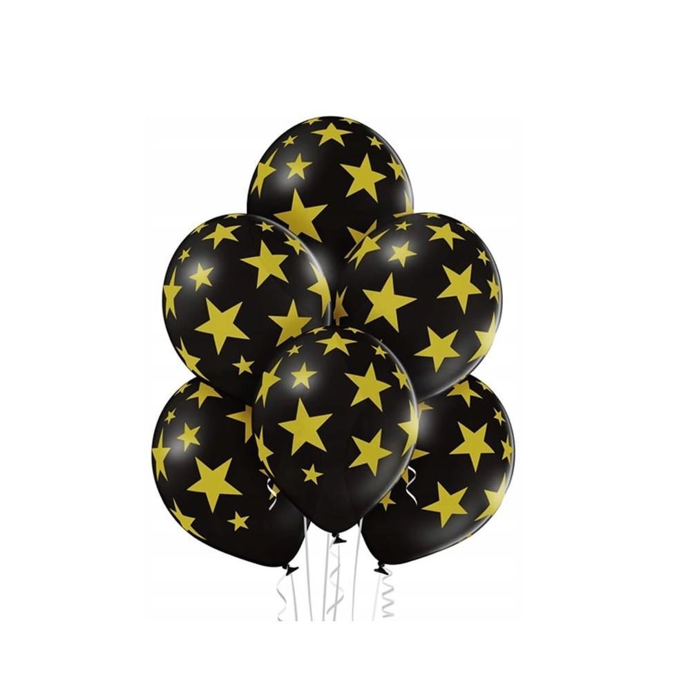 Balony Pastelowe Czarne w Gwiazdki – 30cm-6 szt