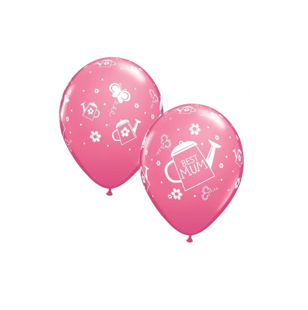 W opakowaniu znajduje się 6 pastelowych balonów w kolorze różowym. Każdy z nich posiada nadruk z postaciami „Super Mama” Zdobiony motylkami i kwiatkami.