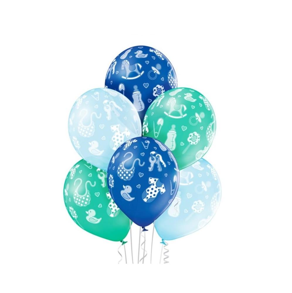 • Wysokiej jakości pastelowe balony z nadrukiem na baby shower lub roczek dla chłopca.
