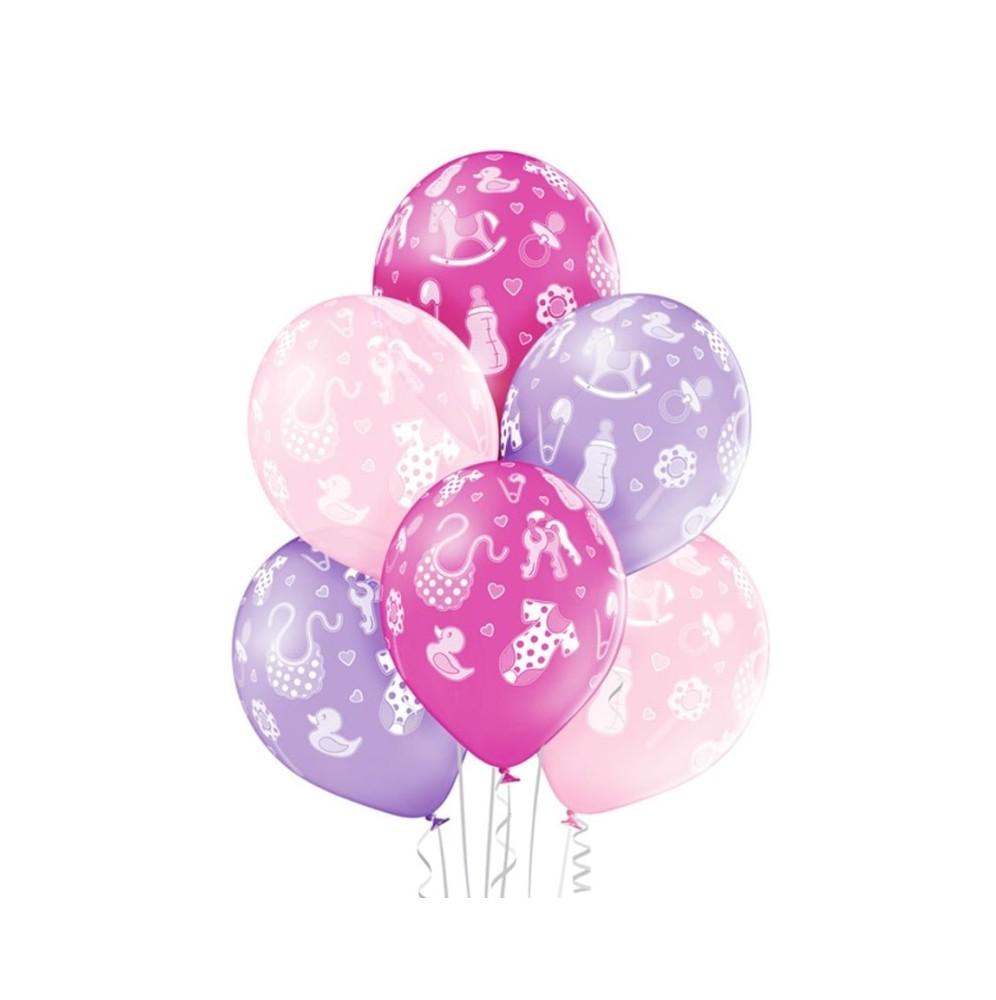 • Wysokiej jakości pastelowe balony z nadrukiem na baby shower lub roczek dla dziewczynki.