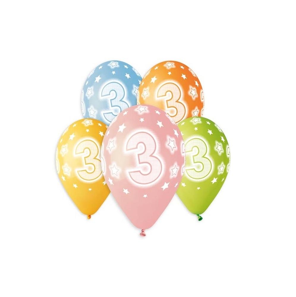 Balony Urodzinowe w Gwiazdki-Cyferka Nr 3- 5 szt.