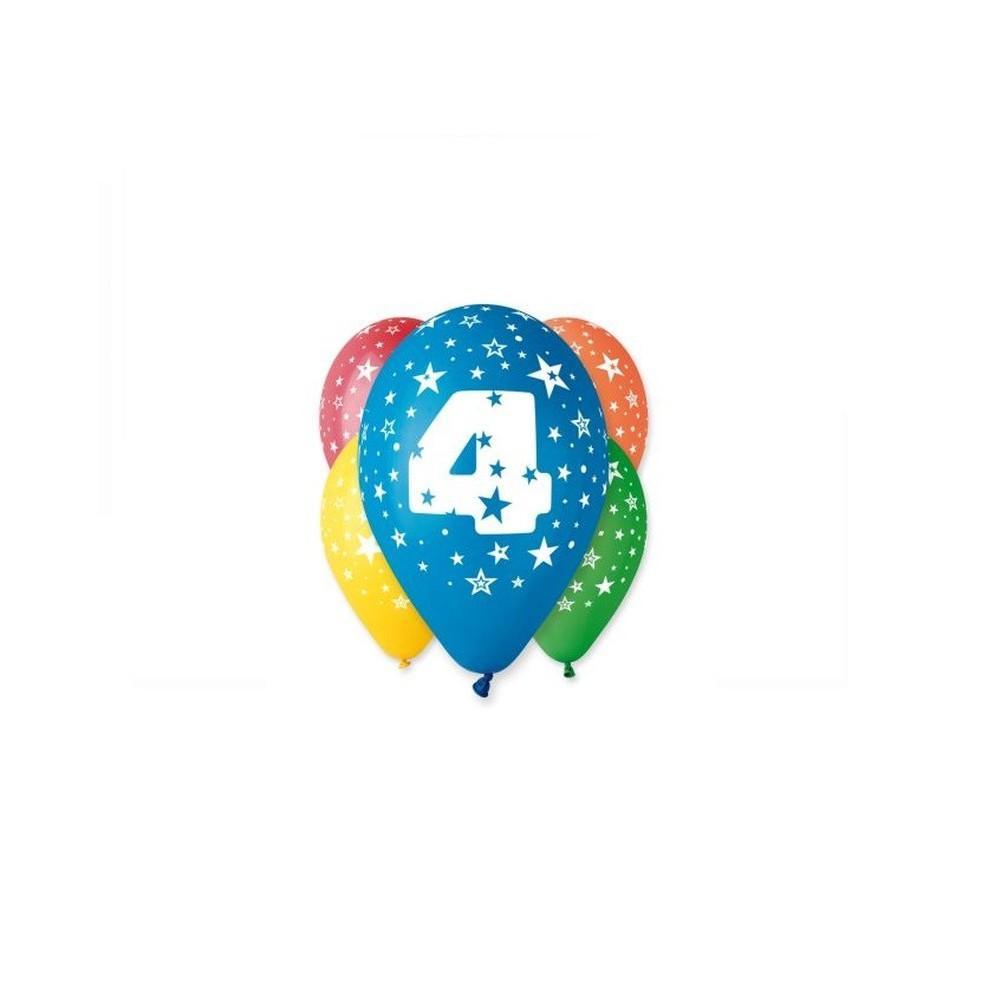 Fantastyczne baloniki z nadrukiem przedstawiającym czwórkę wśród różnych gwiazdek.