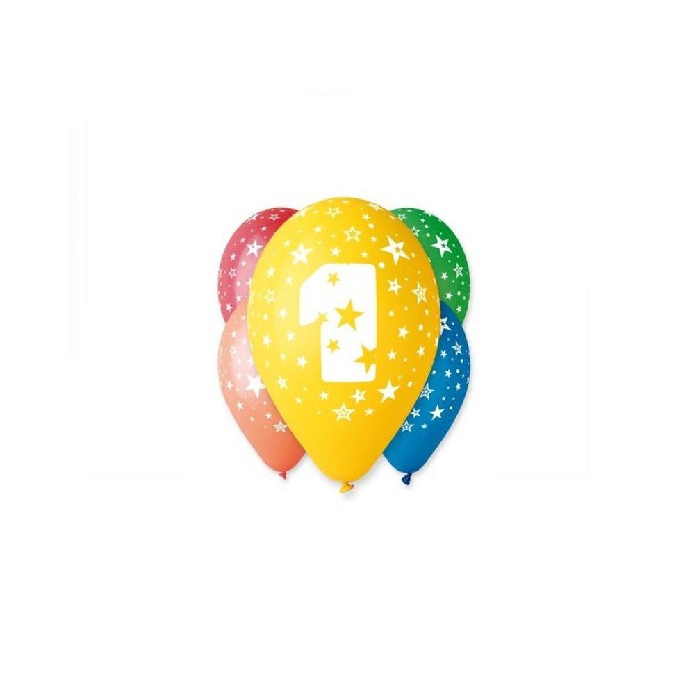 Balony z nadrukiem Jedynka (5 sztuk)