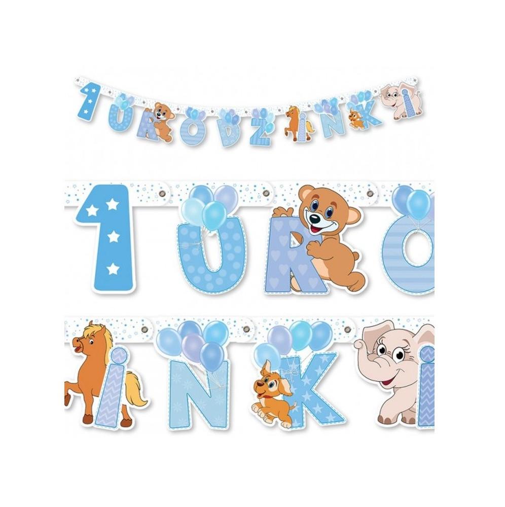 Fajny dodatek do imprezy urodzinowej w postaci banneru na roczek chłopca.