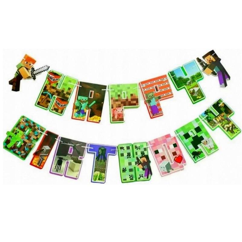 Wykonana z trwałego papieru, ozdobiona grafikami inspirowanymi światem gry Minecraft, idealnie nadaje się do aranżacji przestrzeni podczas przyjęć urodzinowych. Girlanda wprowadza wyjątkowy klimat, podkreślając charakter wydarzenia i dodając estetycznego akcentu każdemu wnętrzu. Prosta w zawieszeniu, stanowi praktyczne rozwiązanie, które uatrakcyjnia wystrój sali.
