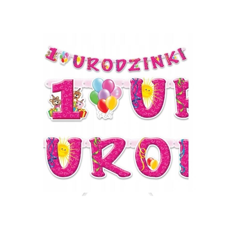 Banner Papierowy 1 URODZINKI RÓŻOWY-175 CM
