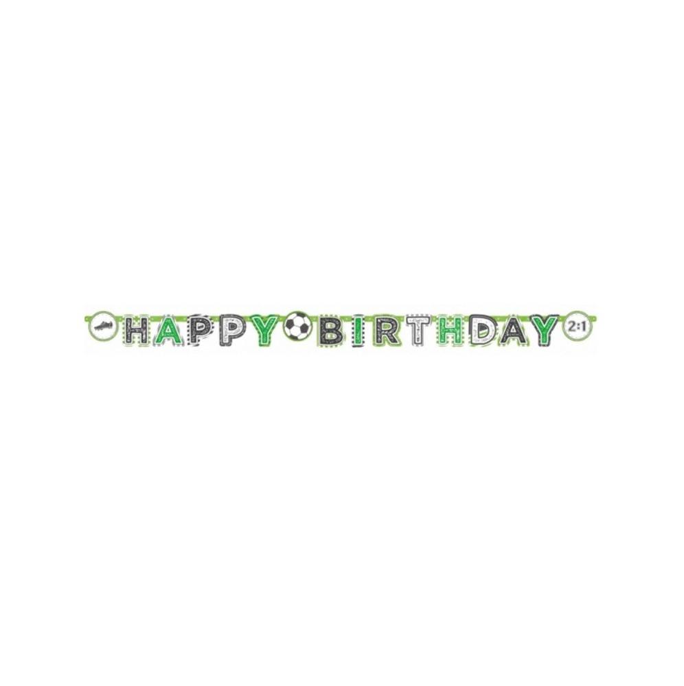 Banner urodzinowy w kształcie liter HAPPY BIRTHDAY z motywem Piłki Nożnej.