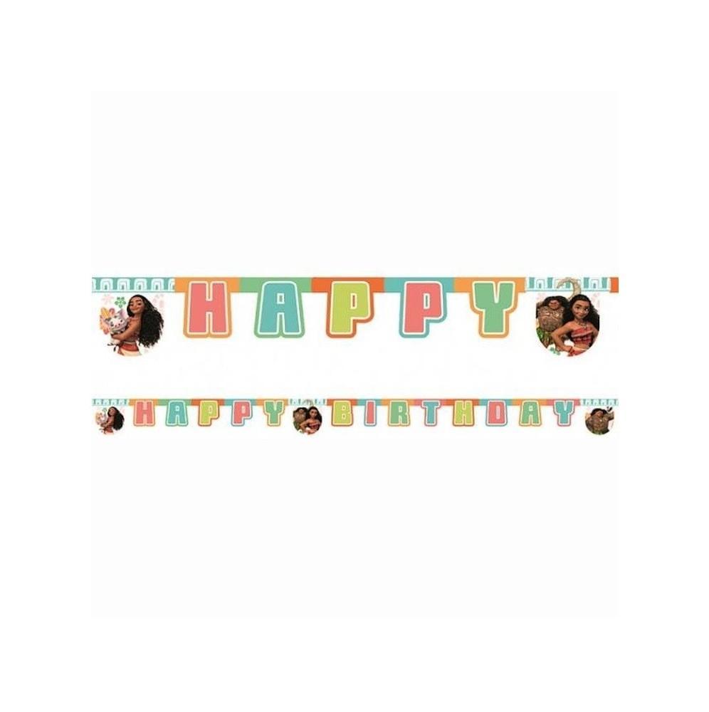 Banner urodzinowy w kształcie liter HAPPY BIRTHDAY z postaciami z bajki Vaiana:Skarb Oceanu.