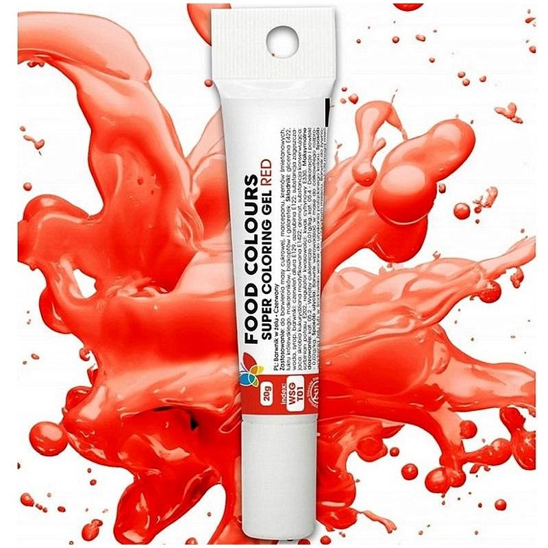 Barwnik spożywczy w żelu Food Colours w intensywnym czerwonym kolorze to doskonały wybór do dekoracji cukierniczych, które wymagają żywych, głębokich barw. Opakowanie 20 g zapewnia wysoką wydajność, pozwalając uzyskać mocny kolor nawet przy niewielkiej ilości.