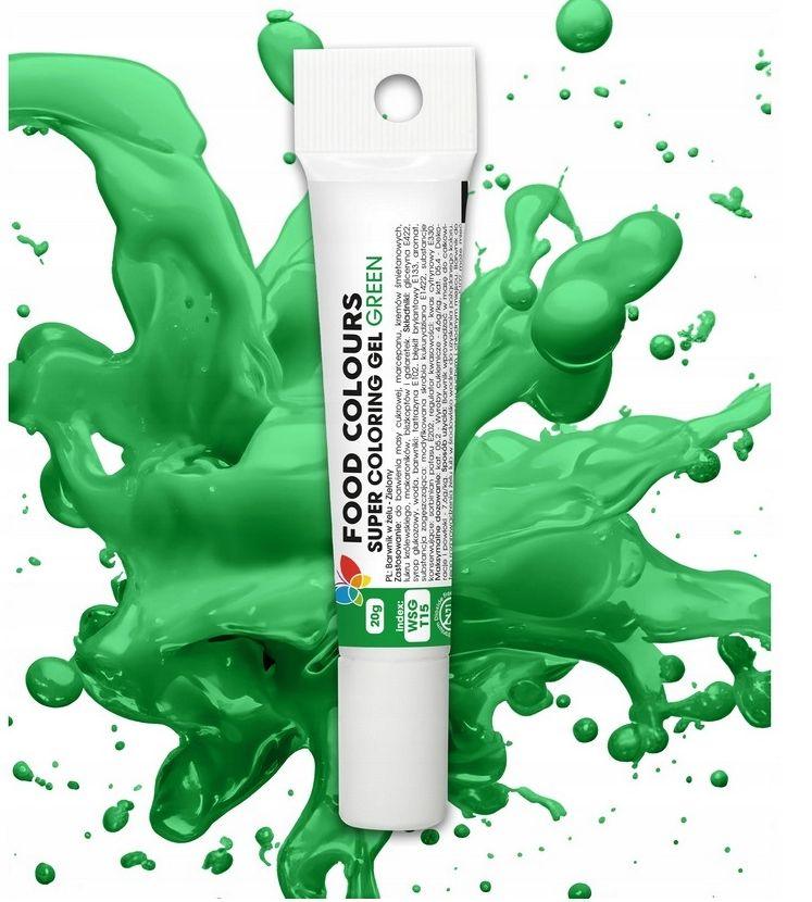 Barwnik spożywczy w żelu o intensywnym, zielonym kolorze. Idealny do dekoracji różnorodnych wypieków, deserów i mas cukierniczych. Zapewnia głęboki, trwały kolor przy minimalnym zużyciu.