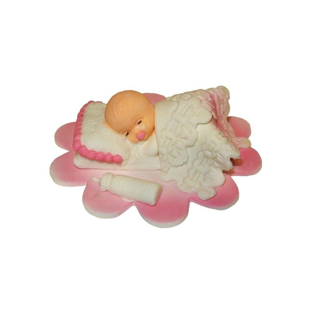 Bobas pod kołderką to piękna dekoracja na tort z okazji chrztu.