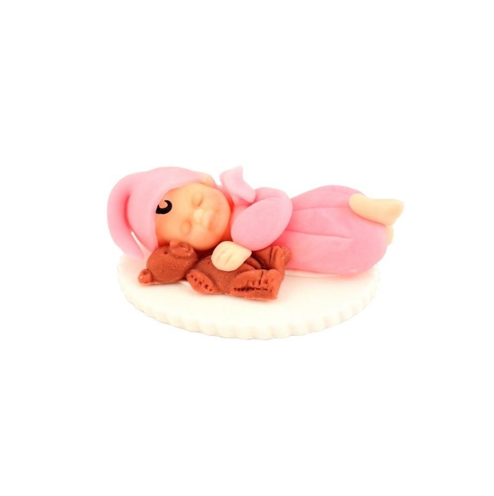 Bobas z misiem to wyjątkowa dekoracja na tort z okazji chrztu. Ozdoba wykonana w całości z cukru. Figurka dedykowana na tort dla dziewczynki. Figurki wykonywane są ręcznie, dlatego poszczególne egzemplarze mogą nieznacznie różnić się od siebie kształtem, ułożeniem, kolorystyką. Rozmiary dekoracji: średnica podstawy wynosi 8cm, wysokość około 4 cm.