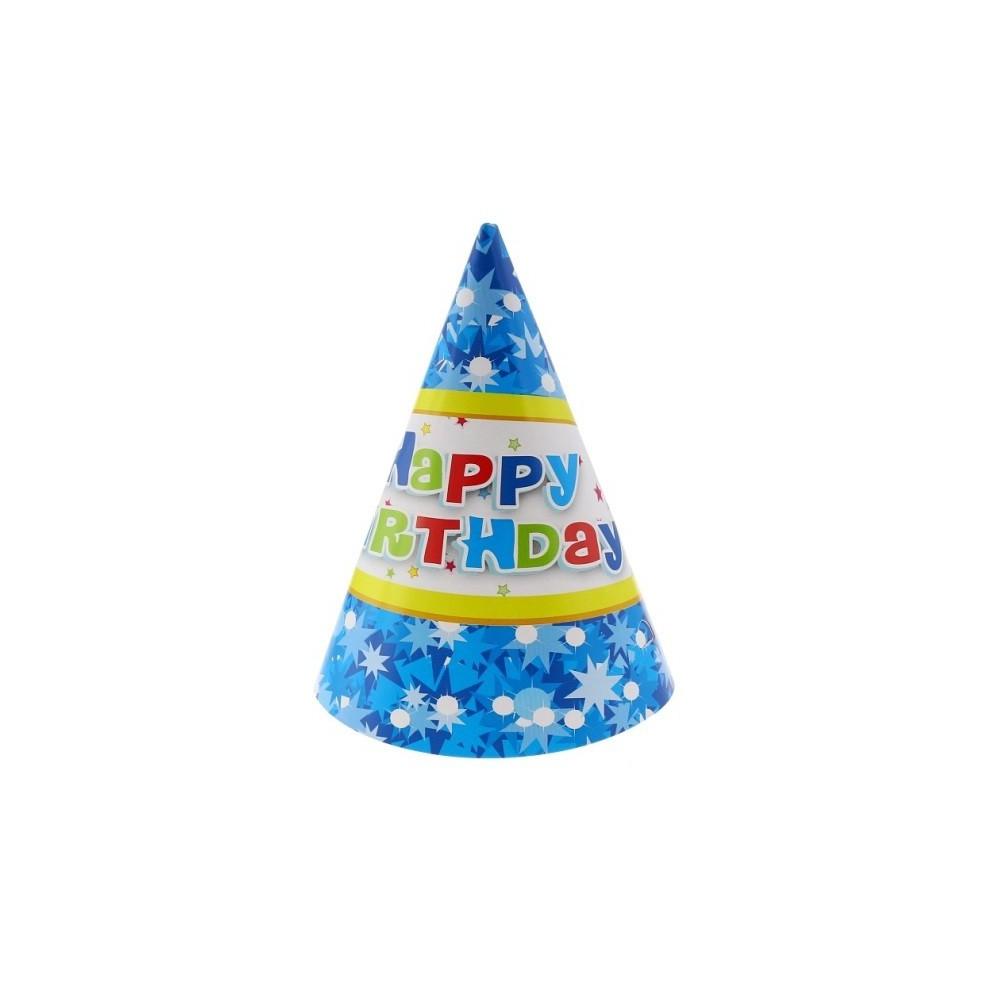 Czapeczki papierowe Happy Birthday niebieskie-6 sztuk