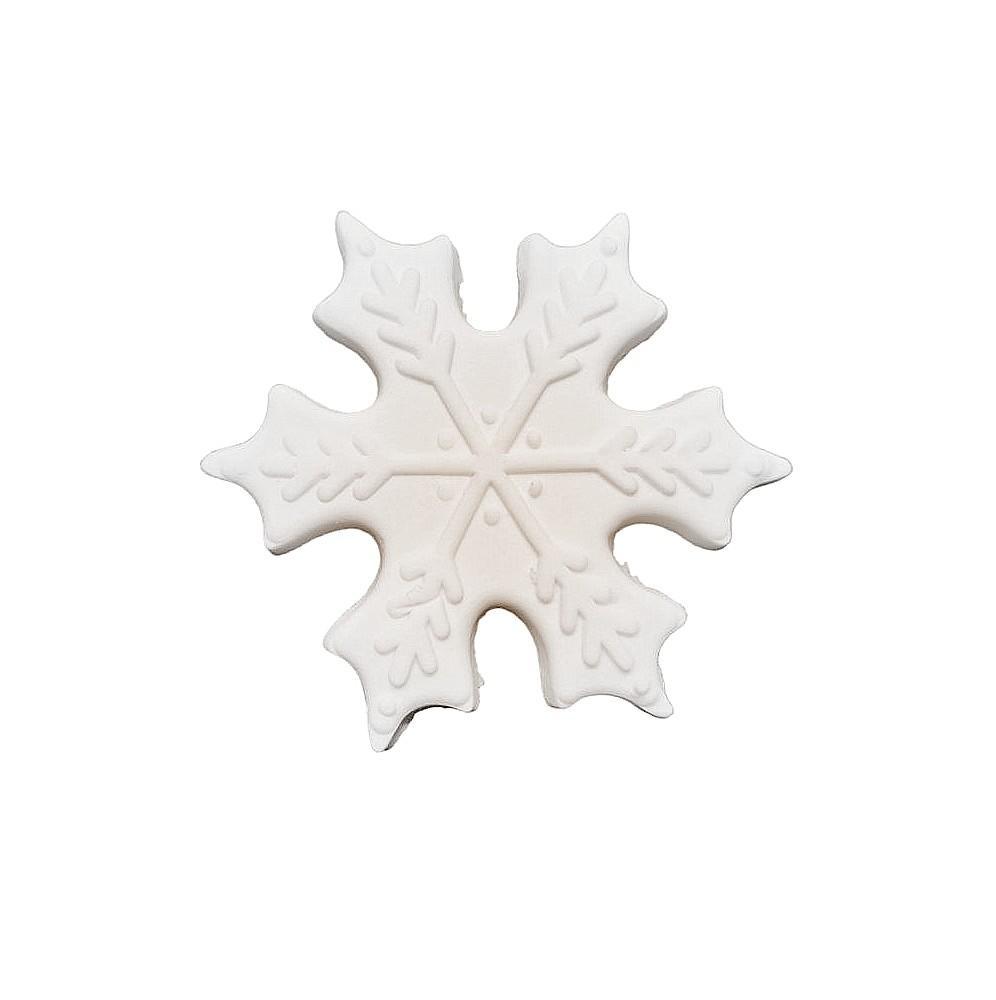 Śnieżnobiała ozdoba w postaci dużego płatka śniegu bajecznie zaprezentuje się na Państwa pysznych świątecznych wypiekach.