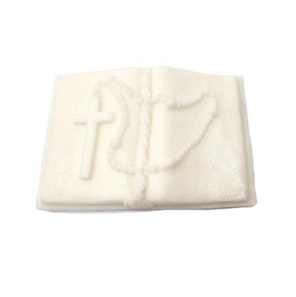 DEKORACJA NA TORT KOMUNIA KSIĄŻKA BIAŁA RÓŻANIEC
