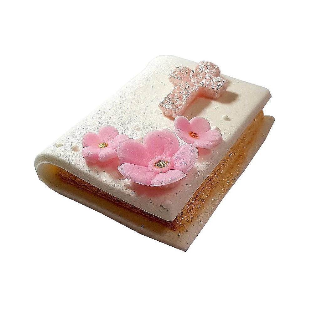 Dekoracja Na Tort Komunia Książka Leżąca Różowa