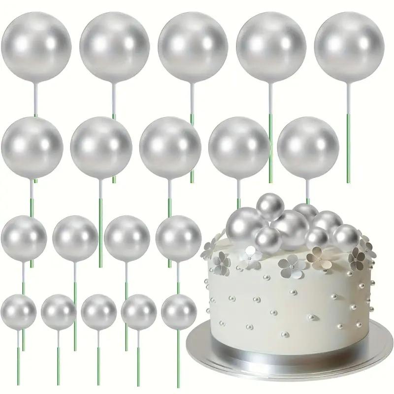Zestaw srebrnych kul na piku to elegancka dekoracja, która doda blasku każdemu wypiekowi. Oferuje 20 sztuk kul w różnych rozmiarach: 2 cm, 2,5 cm, 3 cm oraz 4 cm.