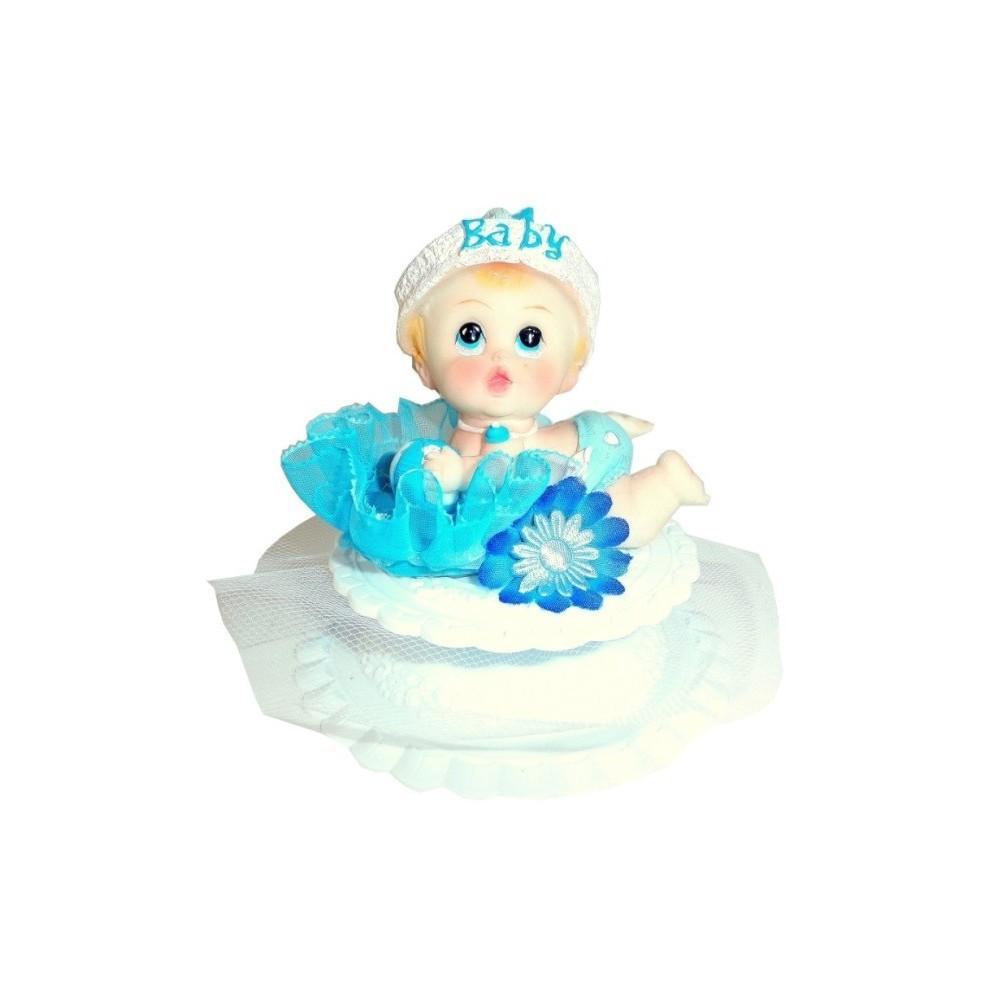 Dzidziuś na brzuchu jest wyrobem przeznaczonym do dekoracji tortu na chrzest. Dekoracja jest w całości  wykonana z materiałów sztucznych i nie nadaje się do spożycia. Ozdoba jest dedykowana dla chłopca. Rozmiary figurki: średnica podstawy: 10cm, wysokość około 10cm.
