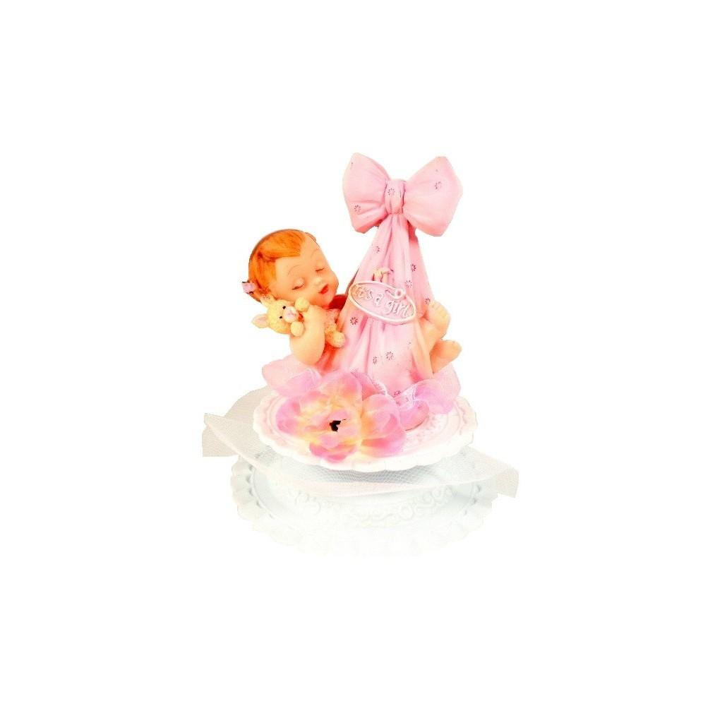 Dzidziuś w kokardzie to figurka której przeznaczeniem jest udekorowanie tortu na chrzciny. Dekoracja jest w całości  wykonana z materiałów sztucznych i nie nadaje się do spożycia. Ozdoba jest dedykowana dla dziewczynki. Rozmiar dekoracji: średnica podstawy:10cm, wysokość figurki około 12,5cm.