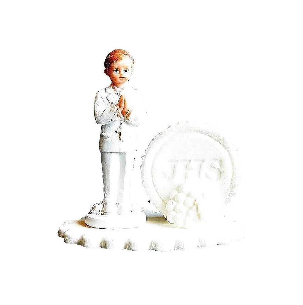 Figurka została wykonana z wysokiej jakości tworzywa sztucznego natomiast podstawa dekoracji i hostia z masy cukrowej.