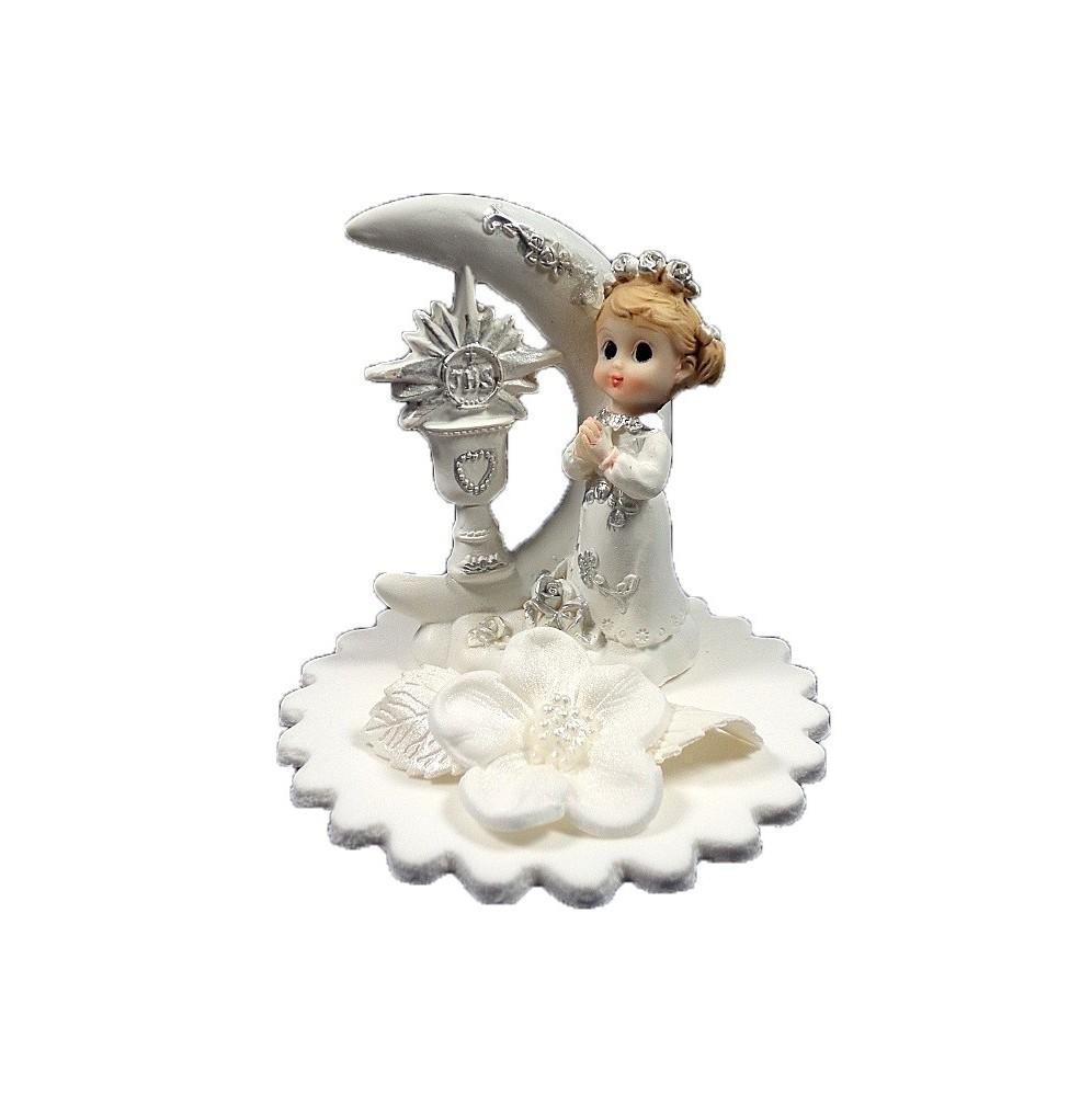 Fantastyczna figurka na tort komunijny dla dziewczynki z okazji tego ważnego święta jakim jest komunia Naszej pociechy. Figurka została wykonana z najlepszej jakościowo materiałów sztucznych natomiast podstawa z masy cukrowej.
