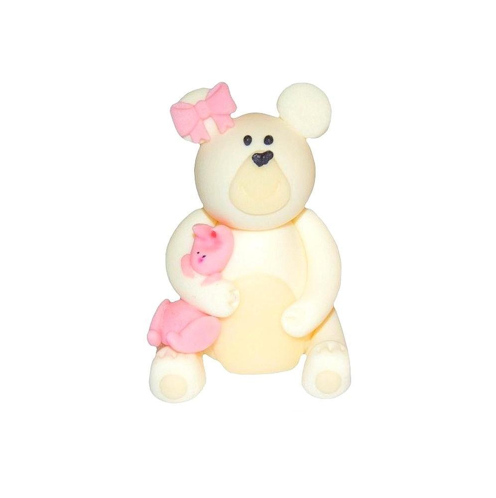 Figurka Na Tort Miś z Cukru Biało-Różowy