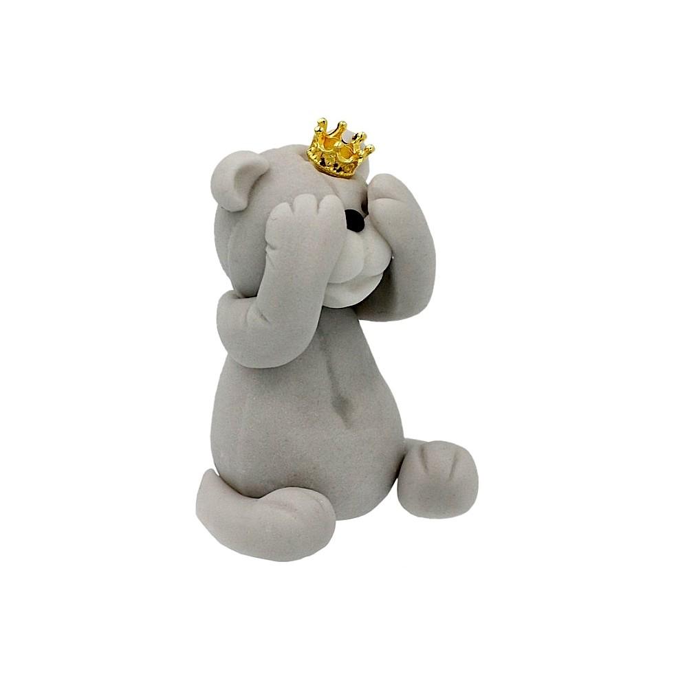 Figurka Na Tort Miś z Cukru w Koronie-Szary