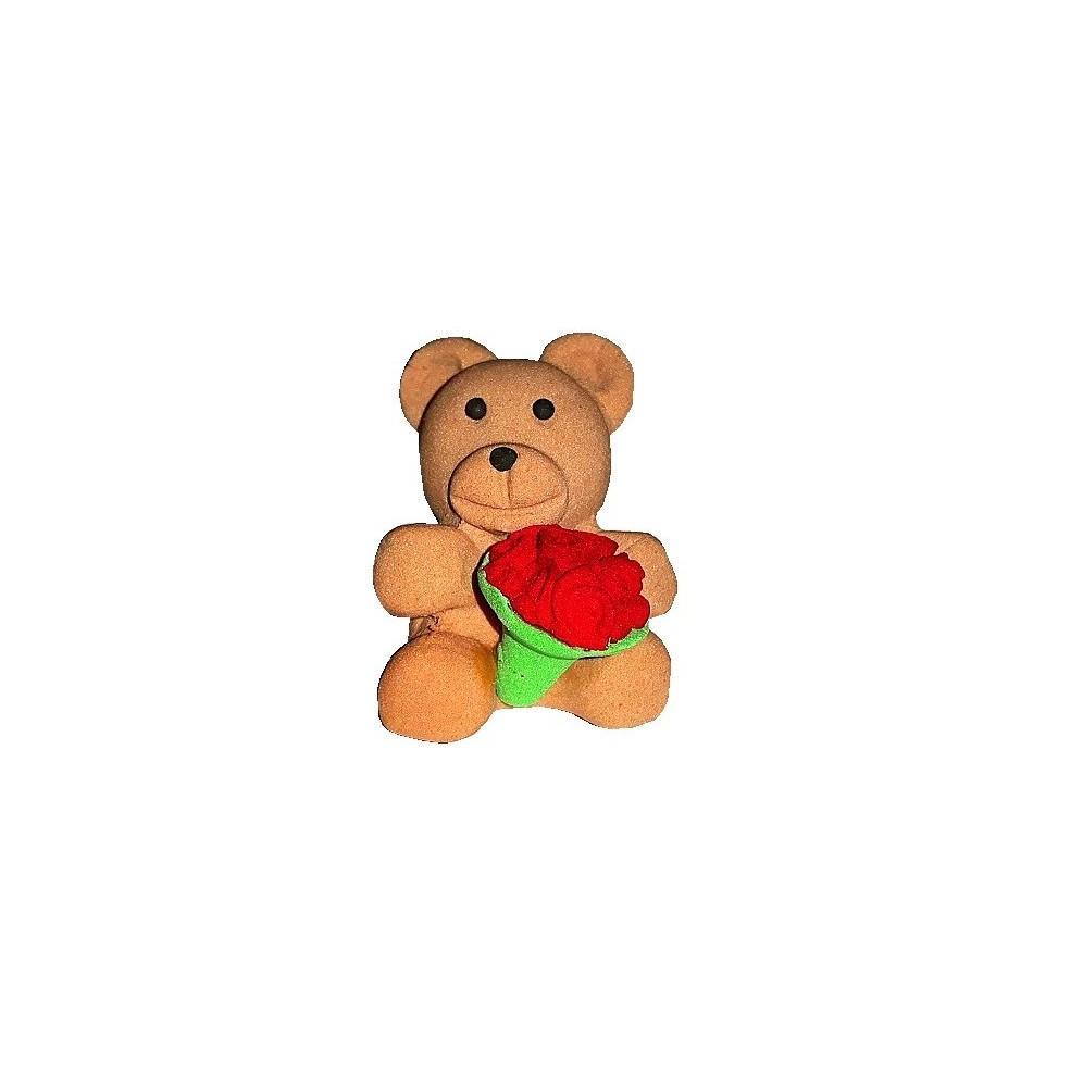 Wyjątkowa figurka na tort z cukru w kształcie misia z bukietem kwiatów.