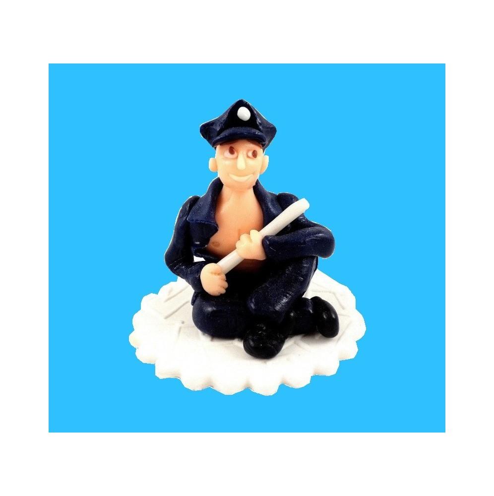 Figurka na tort Policjant to doskonała ozdoba na tort o humorystycznym akcencie. Może służyć jako dekoracja tortu  z okazji wieczoru panieńskiego lub urodzin wszystkich kobiet. Taka dekoracja tortu z pewnością na długo zostanie w pamięci naszych gości. Dekoracja jest wykonana z masy cukrowej i nadaje się do spożycia. Rozmiar figurki: średnica podstawy 10cm, wysokość figurki około 10cm. Cena dotyczy 1-nej FIGURKI.