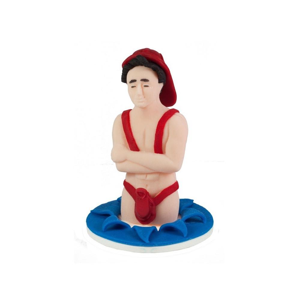 Fantastyczna figurka na tort w postaci skąpo ubranego strażaka w żartobliwy sposób uświetni urodziny Państwa solenizanta.