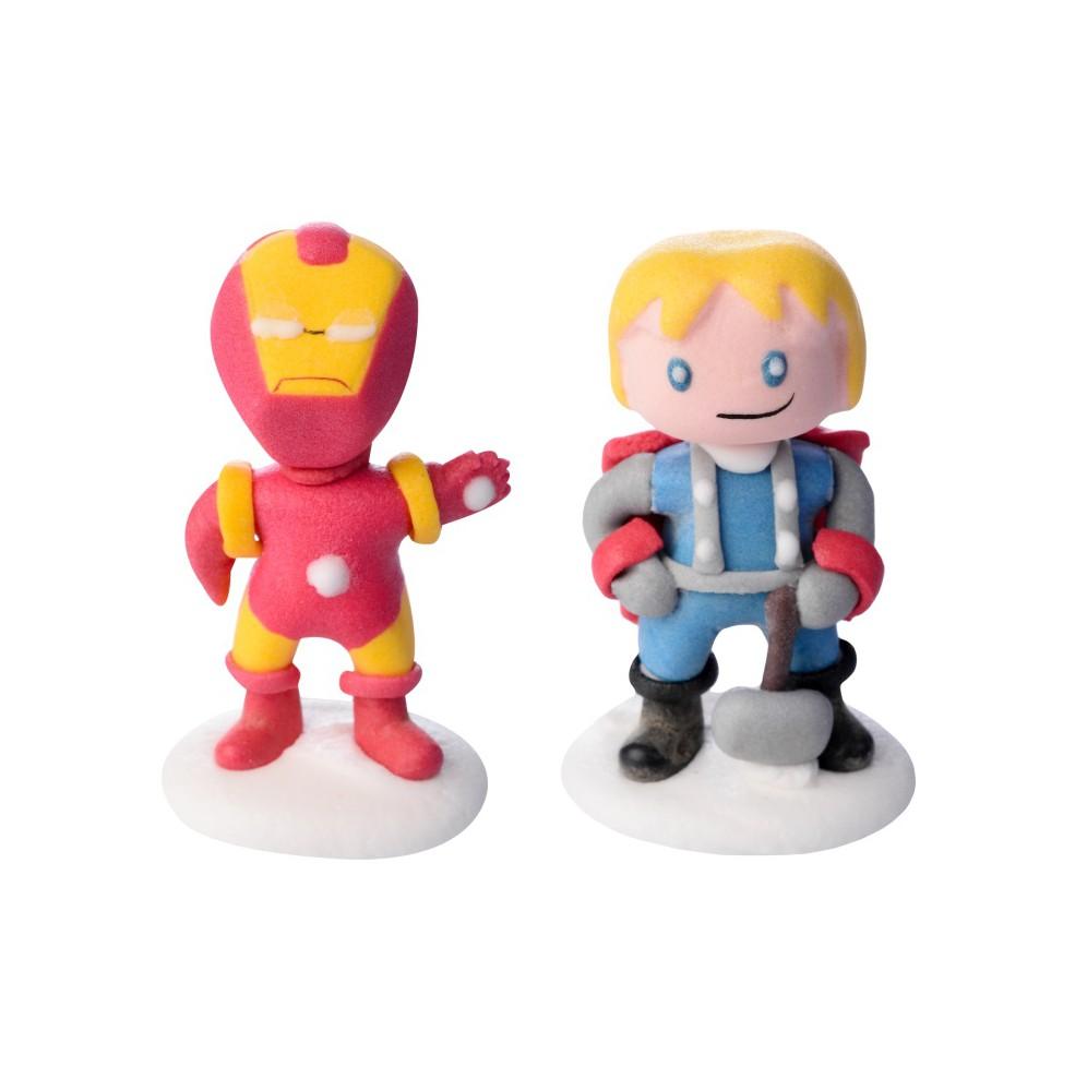 Fantastyczne figurki bajkowe w postaci Ironmana i Thora z Avengers to idealne dekoracje do udekorowania tortu małego solenizanta.