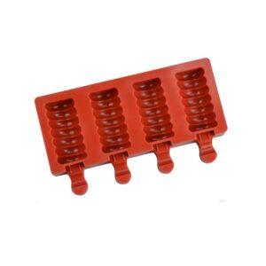 Forma silikonowa przeznaczona do przygotowywania lodów na patyku. Osiem gniazd umożliwia stworzenie porcji w wygodnym, małym rozmiarze. Materiał elastyczny, odporny na niskie temperatury, ułatwia wyjmowanie gotowego deseru bez ryzyka uszkodzenia.