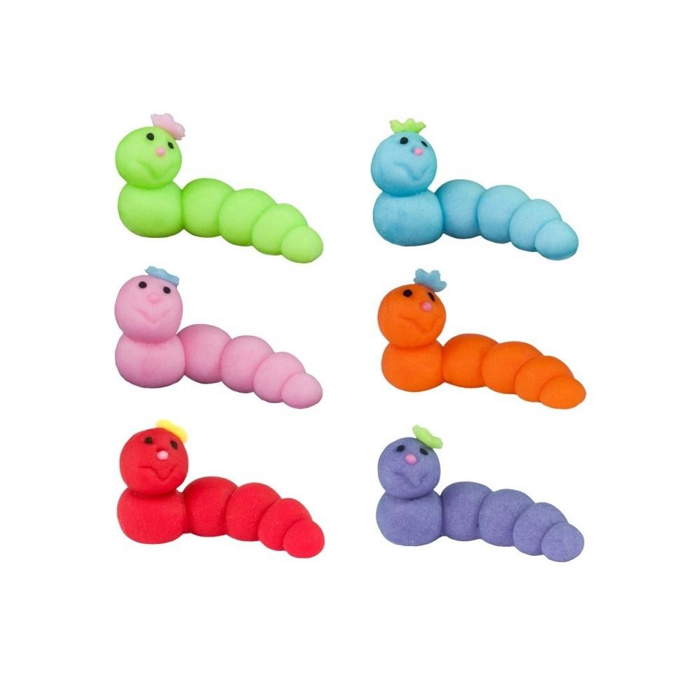 Rewelacyjne figurki na tort w kształcie różnokolorowych gąsienic z cukru.