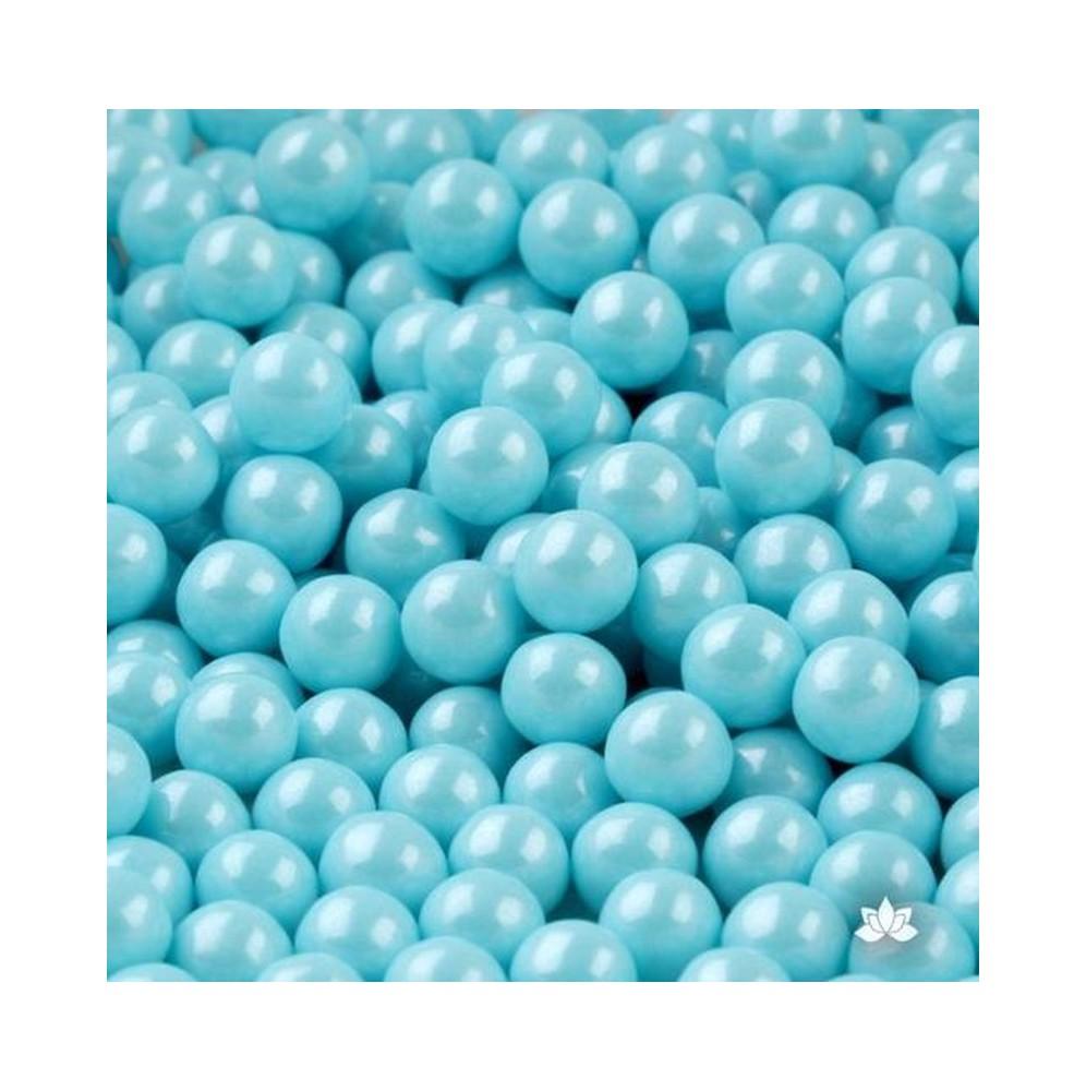 Groszki perłowe w kolorze niebieskim to przepięknie błyszczące perełki które w wyjątkowy sposób udekorują tort, ciasto, muffinki, babeczki, pierniczki oraz wszelkiego rodzaju desery.