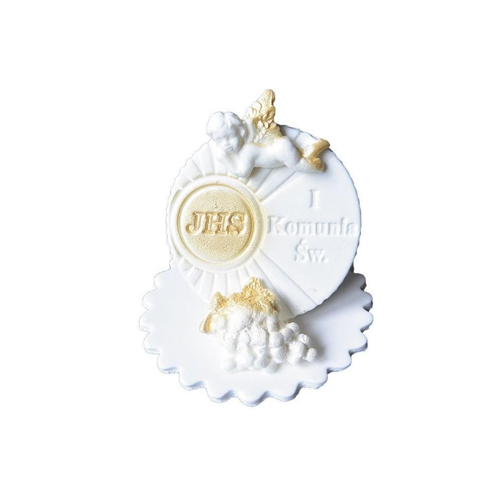 Hostia średnia stojąca jest to idealna dekoracja do szybkiego udekorowania Naszego pysznego tortu komunijnego.