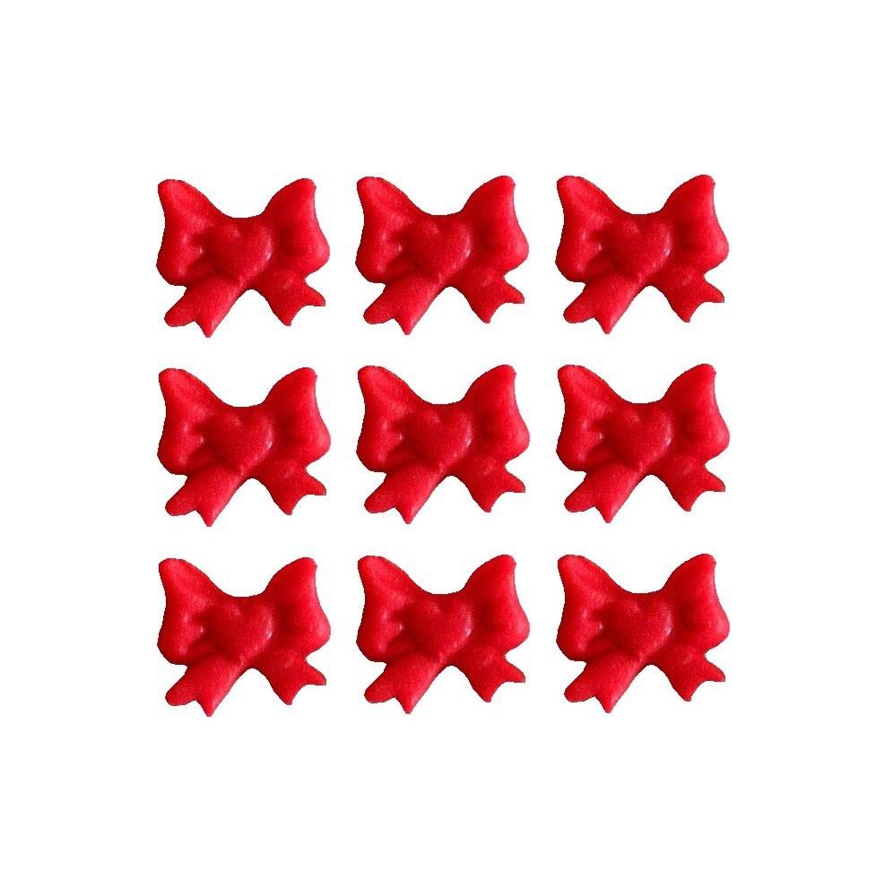 Fantastyczne czerwone kokardki do dekoracji tortu na chrzest dziewczynki.
