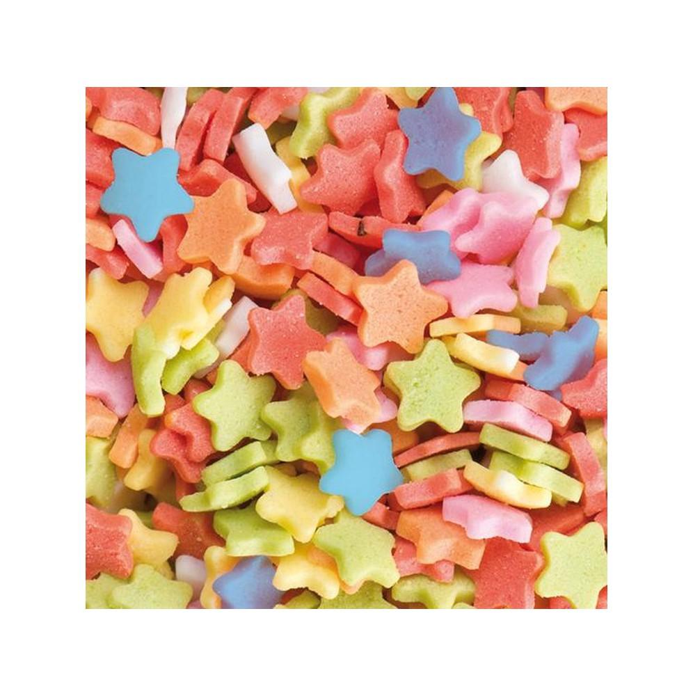 Konfetti cukrowe w kształcie gwiazdek w miksie kolorów to idealna dekoracja do wszelkich tortów, ciast, pierniczków, muffinków oraz wspaniała posypka do lodów i deserów.