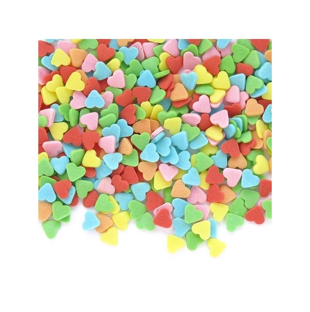 Konfetti cukrowe w kształcie serduszek mix kolorów to idealna dekoracja do wszelkich tortów, ciast, pierniczków, muffinków oraz wspaniała posypka do lodów i deserów.
