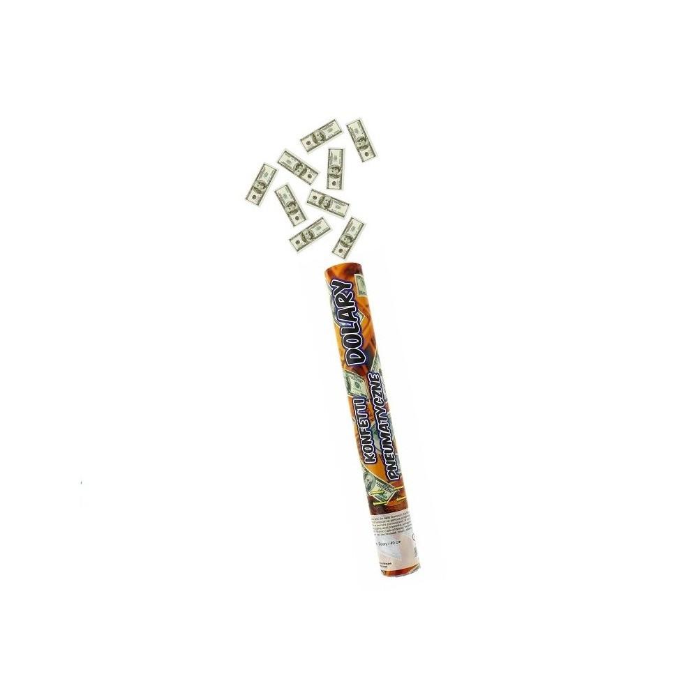 Poręczne konfetti pneumatyczne w kształcie tuby z której wylatują banknoty imitujące dolary. Wyrzut następuje za pomocą sprężonego powietrza. Bardzo fajny dodatek do imprezy urodzinowej Naszego jubilata.