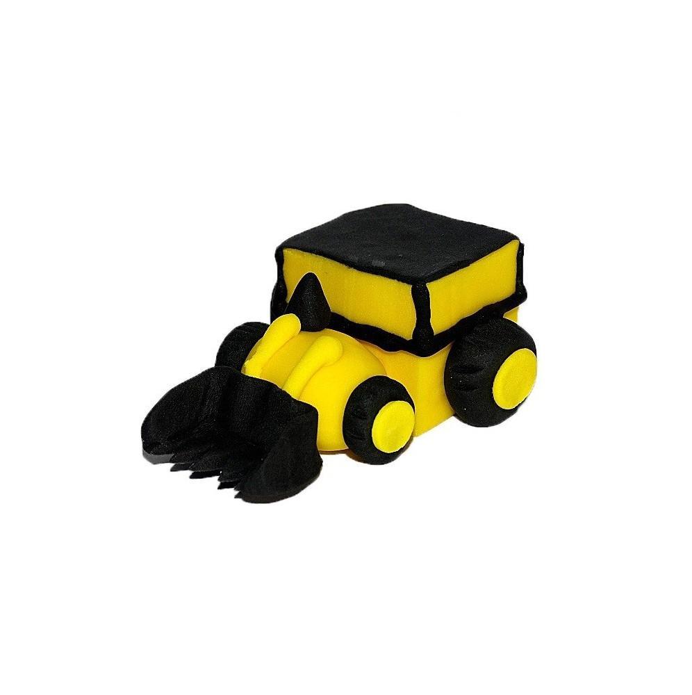 Fajna dekoracja na tort dla dzieci w postaci koparki ładowarki . Ozdoba w całości została wykonana z cukru i nadaje się do spożycia.