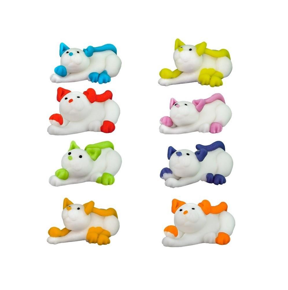 Rewelacyjne figurki na tort w kształcie różnokolorowych kotków z cukru.