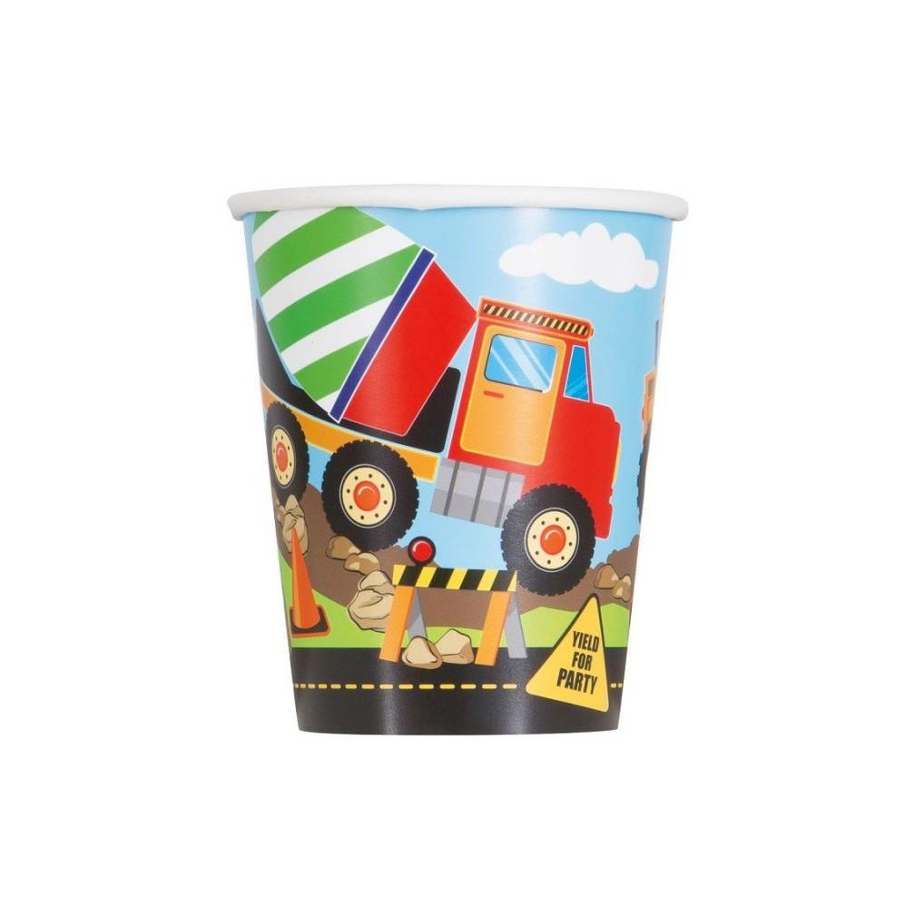 Kubeczki papierowe z motywem Maszyn Budowlanych to idealny dodatek do imprezy urodzinowej Naszego małego solenizanta.