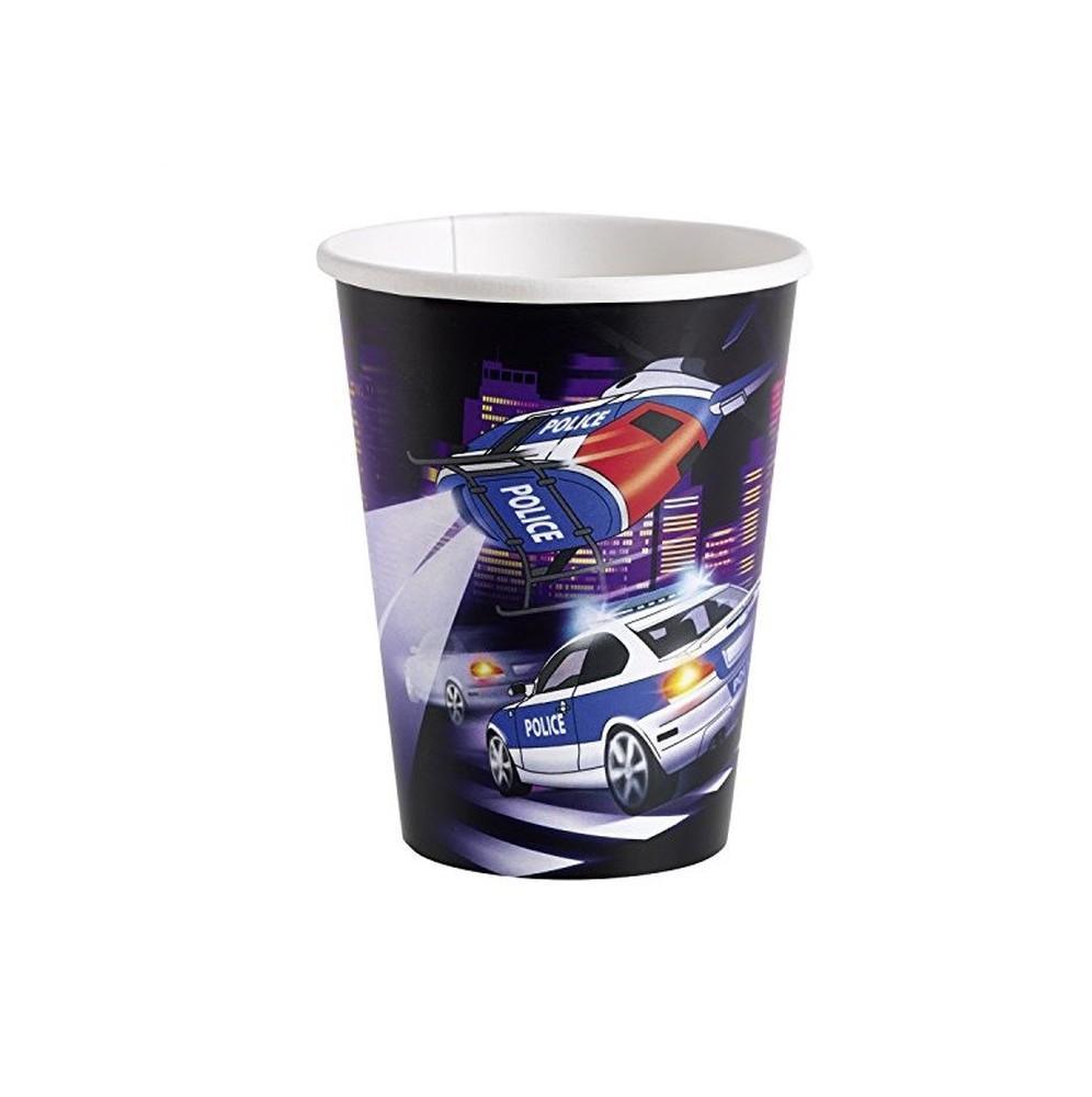 Fantastyczne jednorazowe kubki papierowe z motywem policyjnym.